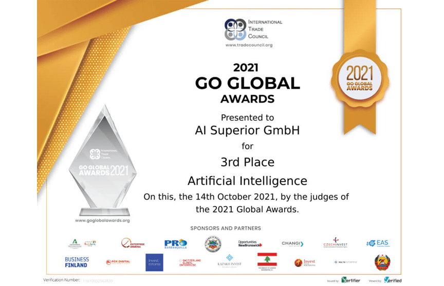 AI Superior GmbH wurde als 3. Platz in der Kategorie Künstliche Intelligenz bekannt gegeben am